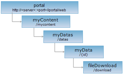 Implement the GET request on the fileDownload resource http://localhost:8090/iportal/web/mycontent/datas/1/download to acquire the downloa file of the date item. The name of the downloaded and the name of the data item are the same.